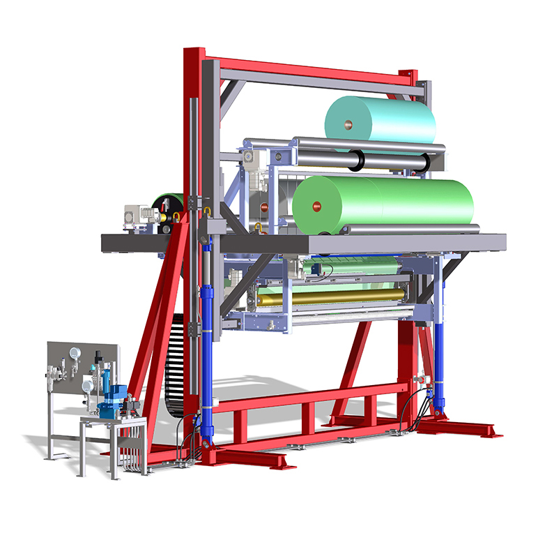 Für eine deutsche renommierte Kunde wurde uns beantragt, eine Folie Boden- und Deckblattaufleger zu entwickeln. Diese Maschine wird eingesetzt in eine vollautomatische Verpackungslinie.